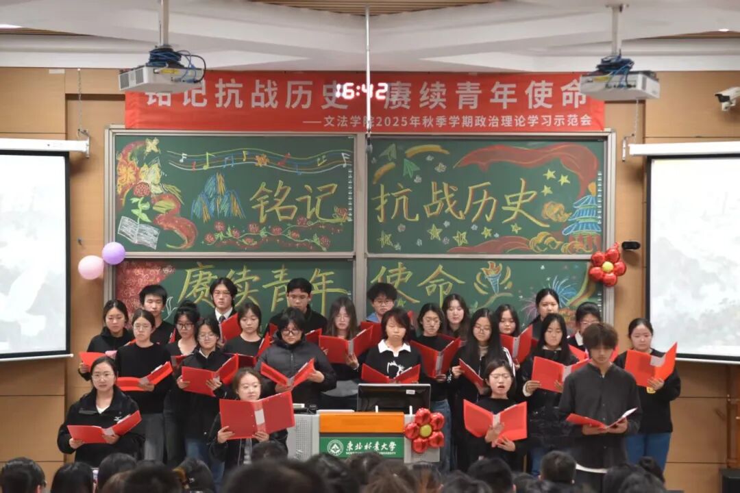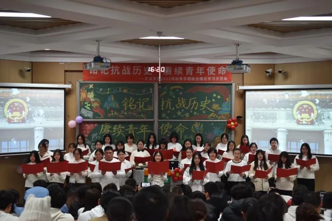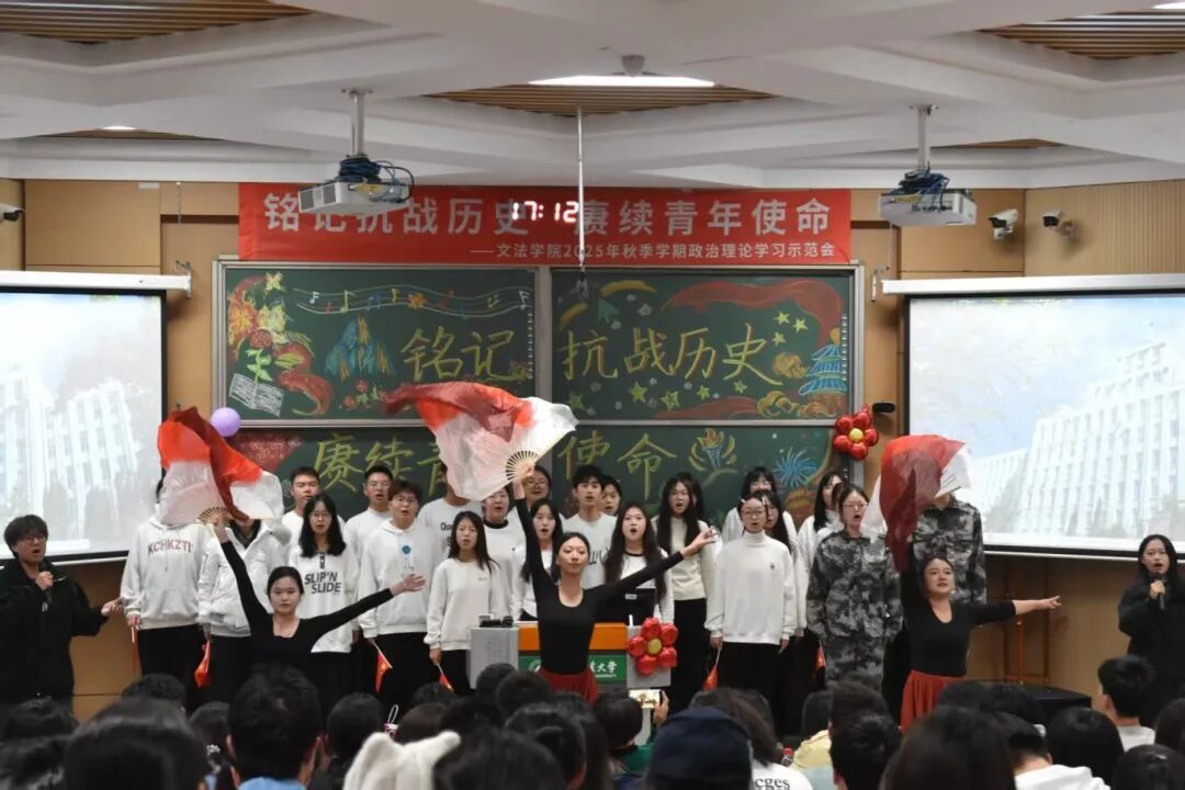 音符落定,余韵悠长。这场政治理论学习示范会不仅是同学们共同的倾心呈现,更是一堂生动深刻的“行走的思政课”!从红色经典的深情演绎到时代新声的激昂唱响,同学们用青春的方式回望历史、礼赞祖国,让拳拳爱国心、殷殷报国情在舞台上尽情绽放。愿这份在心底激荡的家国情怀,能化作同学们前行路上的不竭动力,将个人理想融入国家发展的洪流,以青春之我、奋斗之我,在中国式现代化的征程上书写属于我们这一代人的青春答卷,让爱国主义的伟大旗帜永远在心中高高飘扬 !