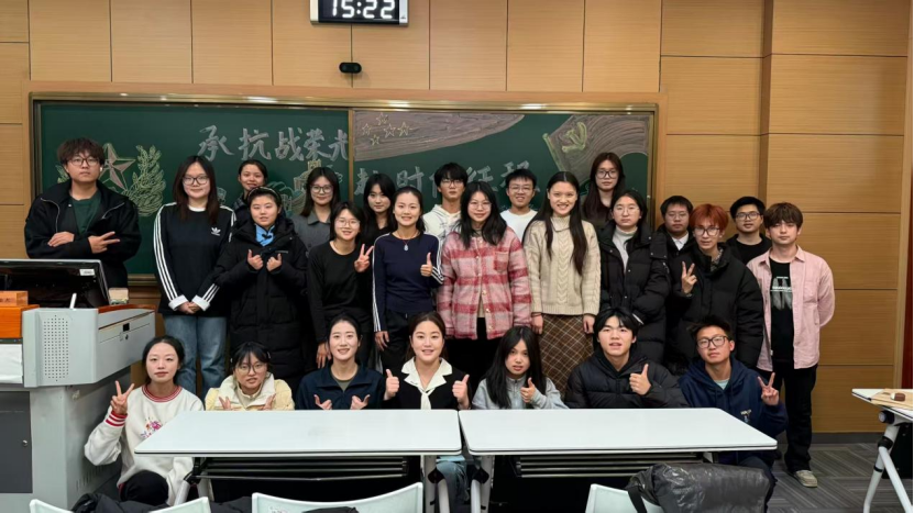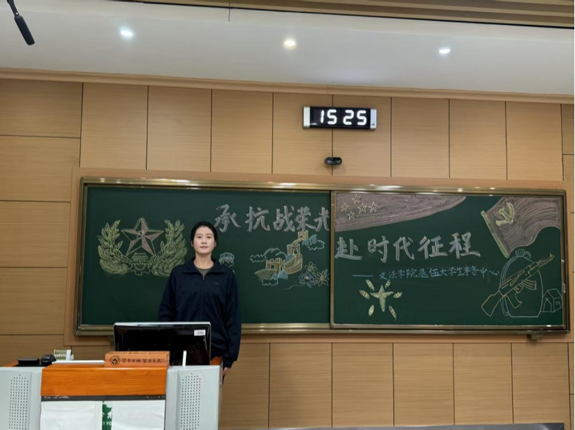 2025级社会工作一班水浩帅分享:听到学姐阅兵训练的经历,我真的备受触动!我恍然大悟,原来惊艳出场的背后是不放弃的坚持。现在我们不用上战场,但把抗战历史记在心里、把课堂知识学扎实,就是对先辈最好的致敬。以后我会以学姐为榜样,既不忘过去的艰辛,更踏实做好当下,争取在自己的赛道上,为祖国的宏伟事业添一份力!