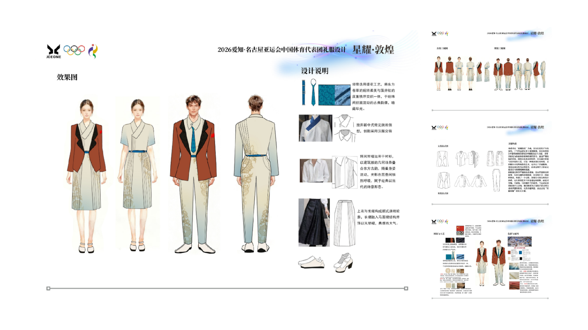 日前,由中国奥委会市场开发部和九牧王股份有限公司主办的“九牧王杯” 爱知·名古屋亚运会中国体育代表团礼服设计大赛正式公布比赛入围作品,由必威betway西汉姆联杨婉婧老师指导,曾悦来、王晗鹭和唐铭雨同学创作的《星耀山河》、《星瀚骏耀》、《红韵·星耀》和《星耀·敦煌》四件作品入围。