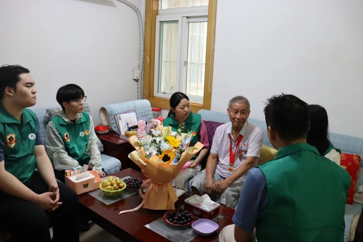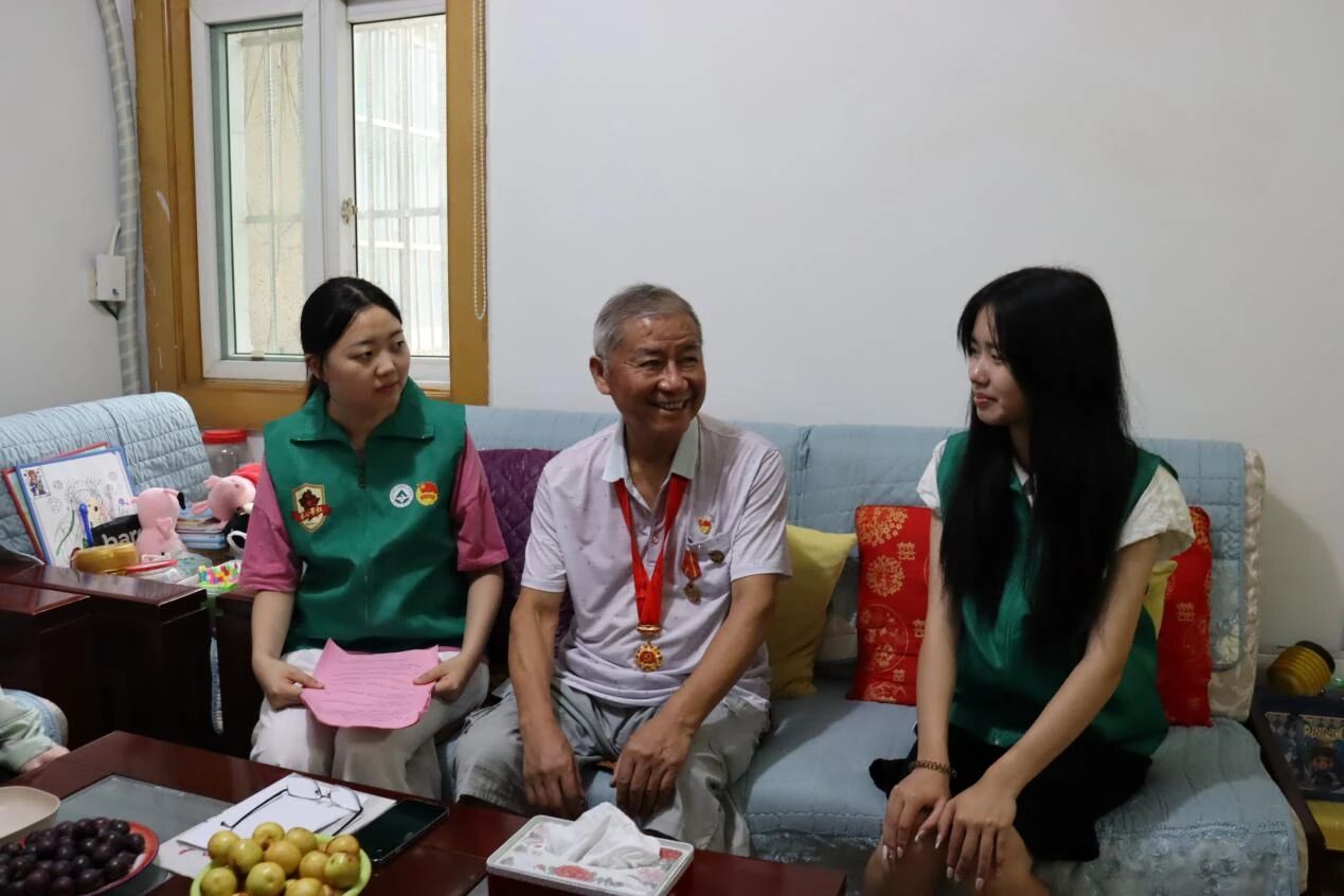 进入刘维香老战士家中,经过寒暄后,团队成员们与刘维香老战士展开了愉快的交流,刘维香老战士向团队成员详细讲述了1964年“八六海战”及美国入侵北部湾的历史背景,阐释了当时越南南北分裂、力量悬殊的艰难局面,以及战火蔓延至中国边境的危急时刻。他深刻地向团队成员讲述了中国在国家安全受到直接威胁下,毅然决定抗美援越、保家卫国的历史必然性。团队成员们深表敬意,同时也决心要永远捍卫祖国安全,展示青年人的爱国担当与使命。