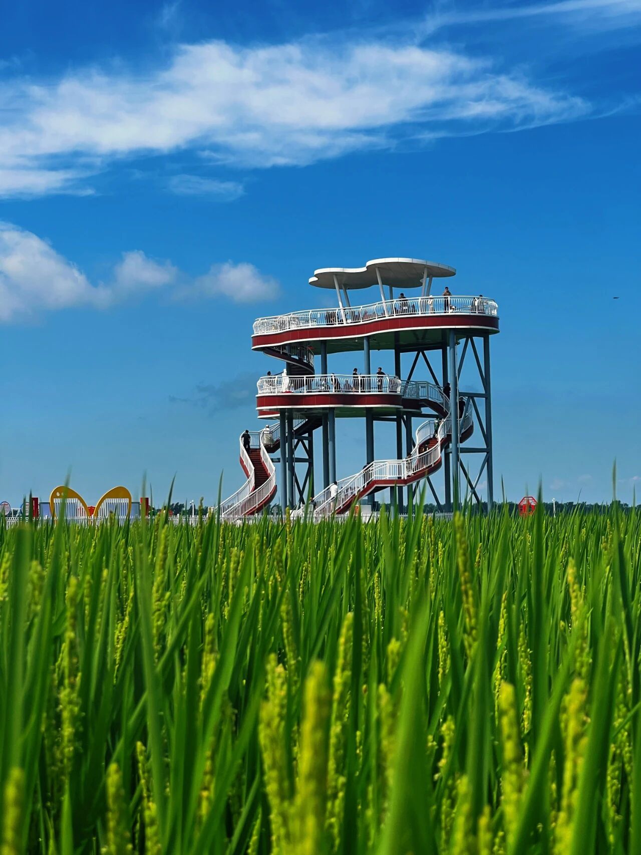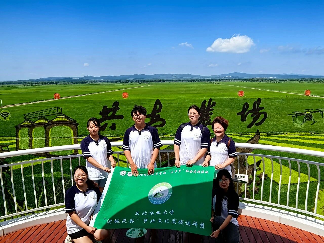如果说纪念馆是对垦荒精神的初步回望,那么共青农场的稻田画,则是垦荒精神的当代注脚。站在共青农场观景台,稻田画如巨幅画卷铺展,稻青与彩绘勾勒出垦荒场景与生态图腾,风过处,稻浪翻涌成流动的诗。俯身轻嗅稻香,仿佛触到了黑土与青春共同呼吸的韵律。这不仅是艺术,更是生态智慧的具象。