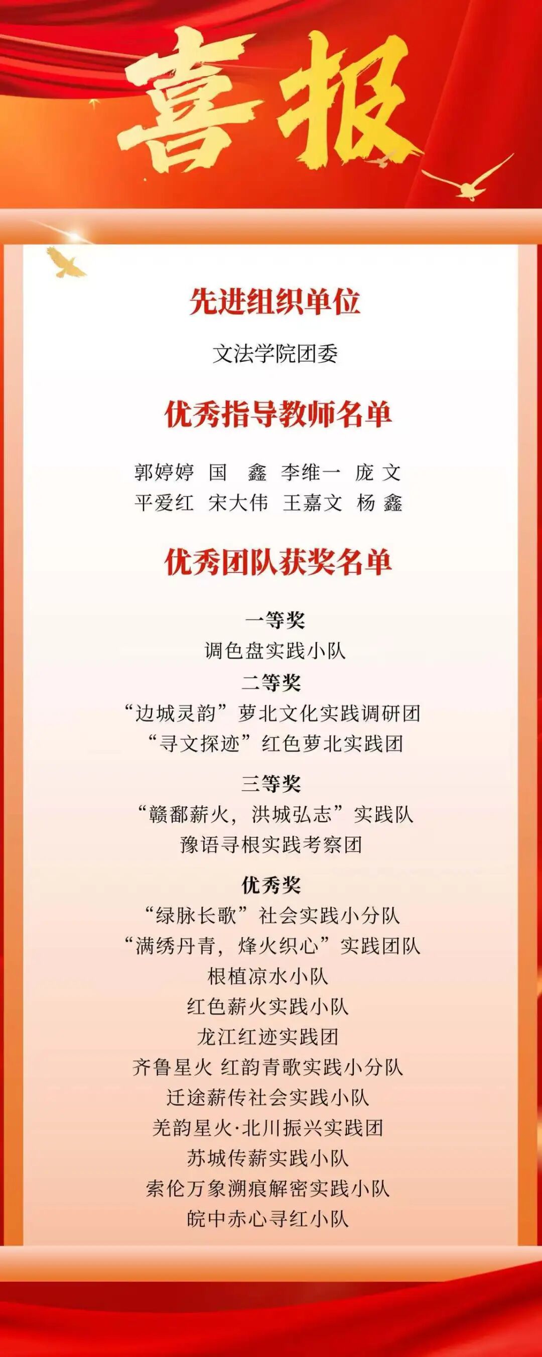 凭借扎实的组织工作成效与丰厚的实践收获,必威betway西汉姆联团委交出亮眼答卷,在本次暑期实践中,荣获“先进组织单位”荣誉称号,13名学子获评“社会实践先进个人”,共6项作品获评“优秀实践成果”,这是文法青年争做先锋、勇担重任的深刻写照。