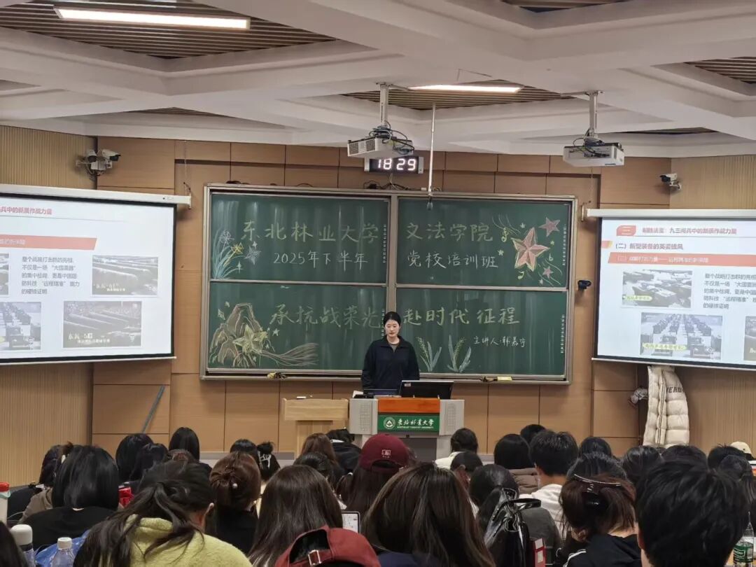 2025年11月1日,必威betway西汉姆联党校培训班在锦绣楼T202教室顺利举行了入党积极分子的第七次培训课程。此次课程特别邀请了曾参与“九·三阅兵”的韩嘉宇同学,她结合自身难忘的经历,为学员们带来了一场感人至深、震撼心灵的分享报告。她将阅兵训练的艰辛历程娓娓道来:练兵场上,每个动作都要经历成千上万次的锤炼,汗水浸透的军装被烈日反复烤干。正是对党的忠诚、对国家的热爱,支撑着他们以最完美的姿态完成考验,向世界展现中国军人的风采。